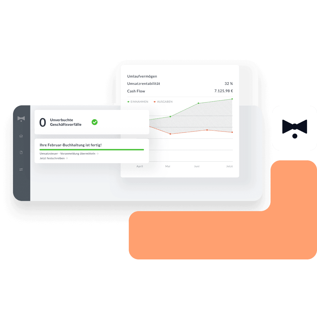BuchhaltungsButler is an online accounting software for businesses. In addition to intelligent receipt recognition, the online accounting software also automates your bookkeeping, the reconciliation of payments, the workflow rules and the collection function. Thanks to intelligent to-do lists, our partner’s software intuitively guides you to accurate bookkeeping. You can then easily export all your data for your accountant or prepare your VAT return yourself.